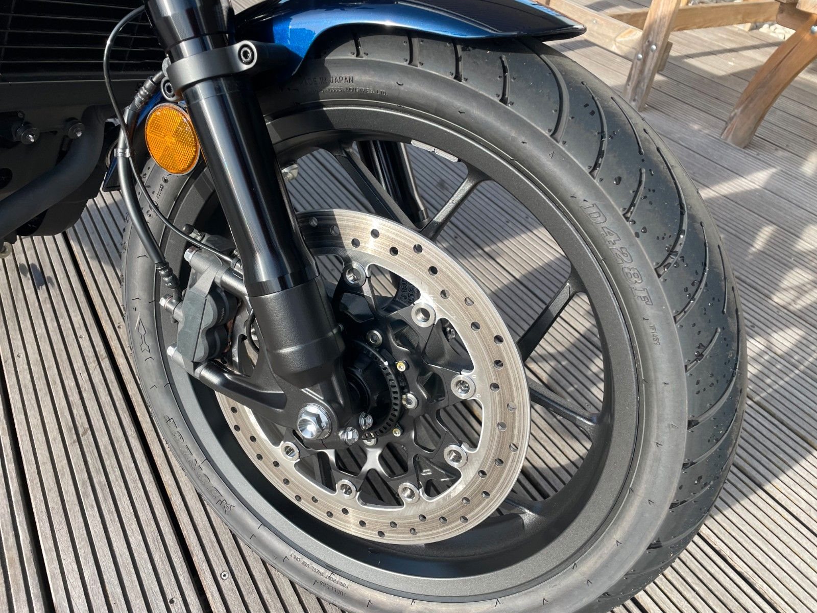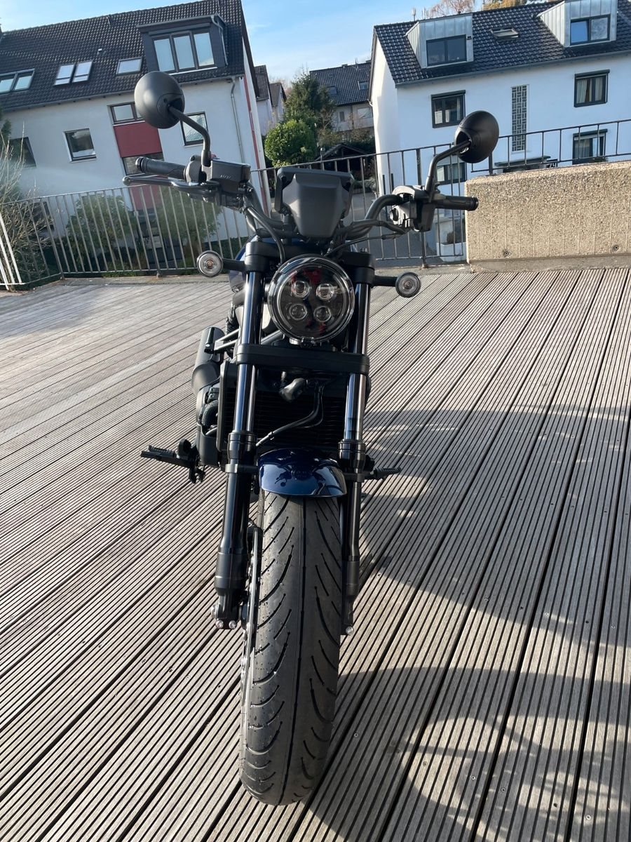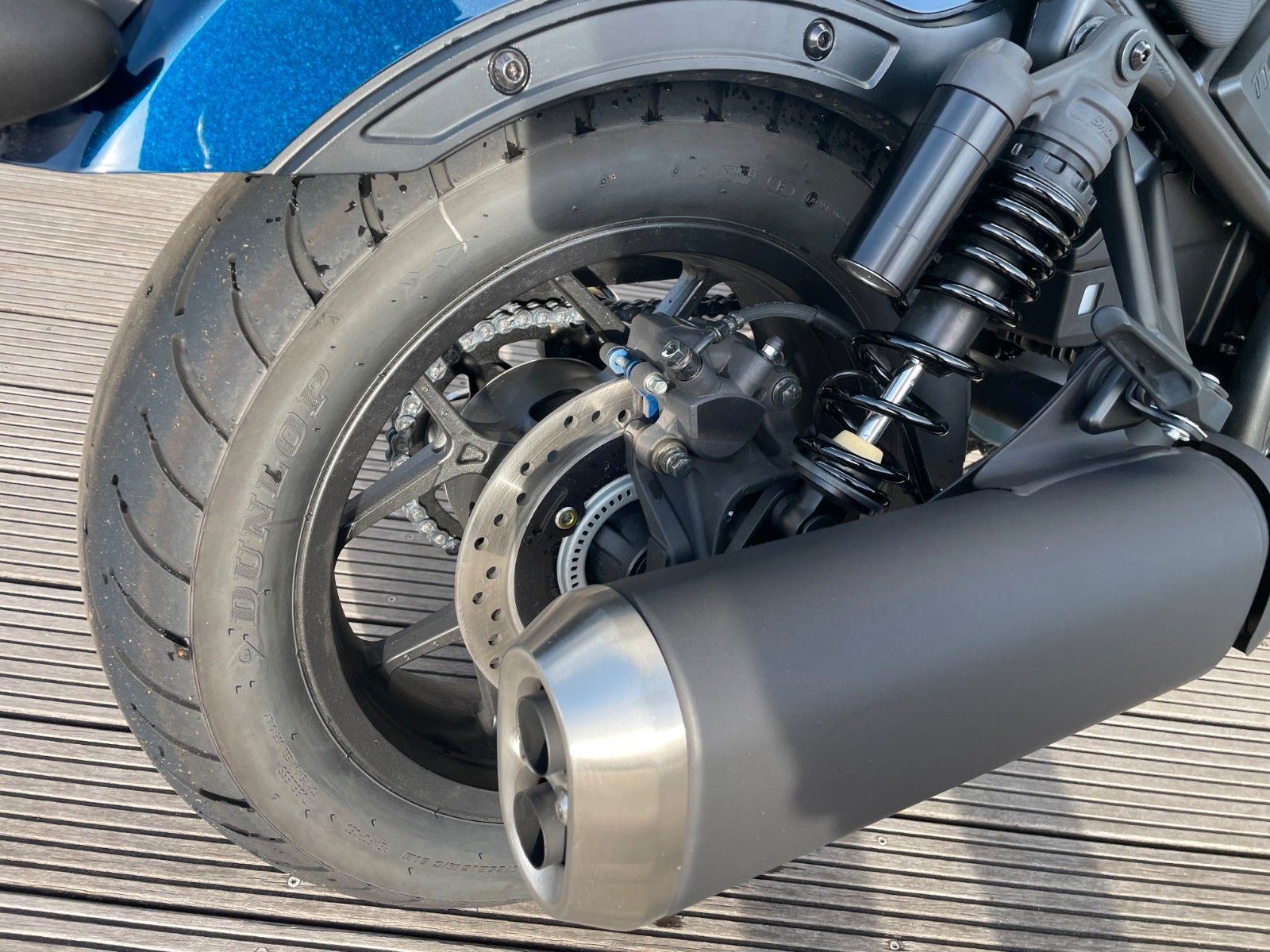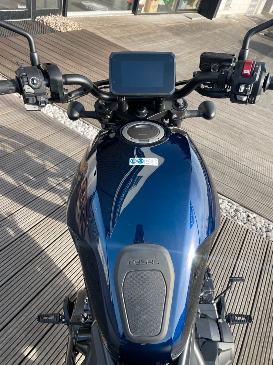 Es geht nicht nur darum, wo du gewesen bist. Es geht darum, wohin du fährst. Die neue CMX1100 Rebel bringt dich in unnachahmlichem Street-Cruising-Stil ans Ziel. Mit dem zusätzlichen Wumms des kernigen Zweizylindermotors schiebt sie von unten heraus über den gesamten mittleren Drehzahlbereich kraftvoll an. Der höher angesetzte, zum Fahrer hin gezogene Lenker,nach vorne gesetzte Fußrasten und 10 mm mehr Sitzhöhe sorgen für eine komfortablere und festere Fahrposition. Während du fährst, hält dich ein gestochen scharfes neues TFT-Display (5 Zoll) mit Smartphone-fähigem Honda RoadSync auf dem Laufenden.