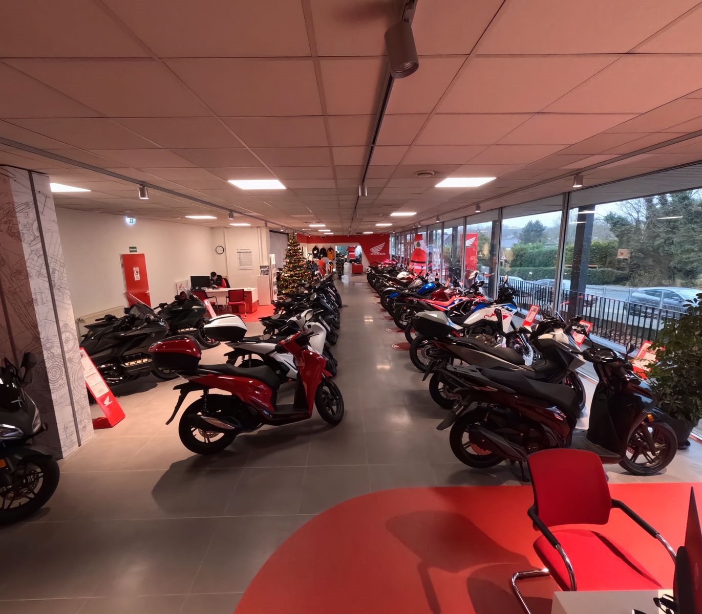 Auf ca. 1.500 qm Ausstellungsraum mit Fachwerkstatt bieten wir ihnen die komplette Modellpalette von Triumph und Honda Neufahrzeugen, sowie immer eine Auswahl an gebrauchten Fahrzeugen aller Marken. Des weiteren stellen wir einen Großteil des Original Triumph und Honda Bekleidungssortiment aus und bieten diverse Accessoires für viele Modelle in der Ausstellung.