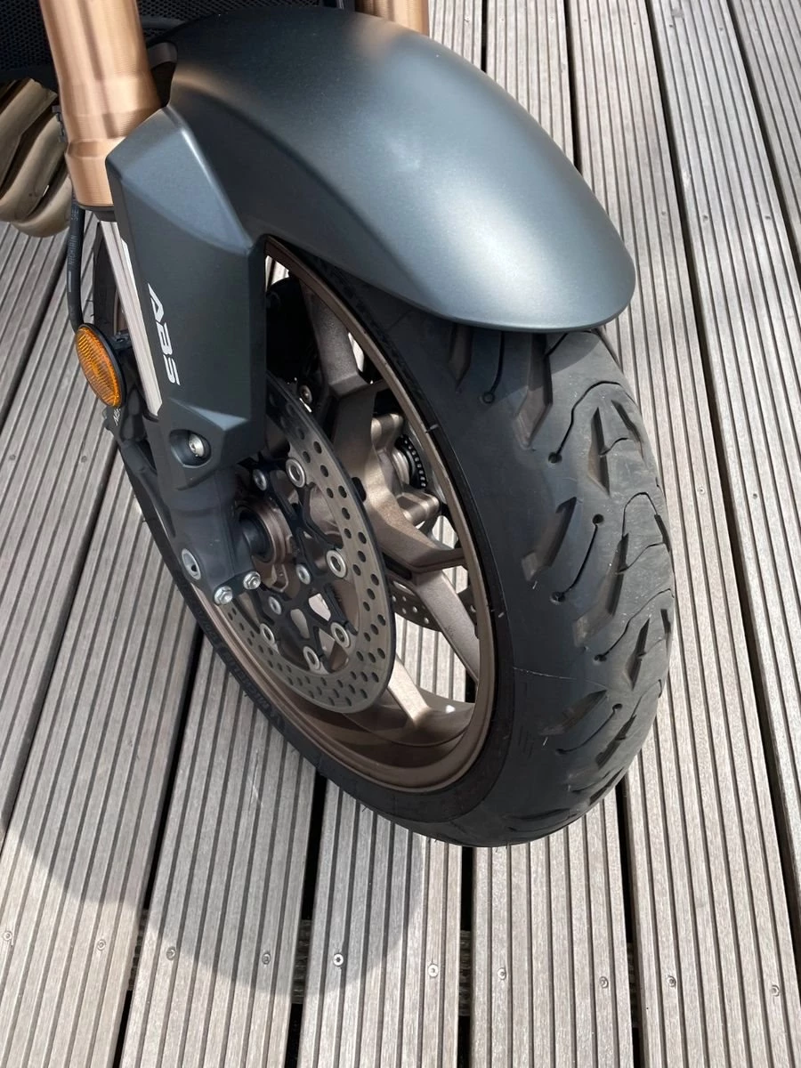 Hondas CB650R beweist hervorragend, dass auch Vierzylinder Naked Bikes mit wenig Hubraum auf der Landstraße ein wahrer Quell der Freude sind. Die Motorabstimmung gibt genügend Druck aus der Spitzkehre und belohnt nach kurzer Wartezeit mit herrlichem Vierzylinder-Kreischen. Die Fahrwerkskomponenten bieten dabei einen soliden Spagat zwischen Alltag und Sportlichkeit.