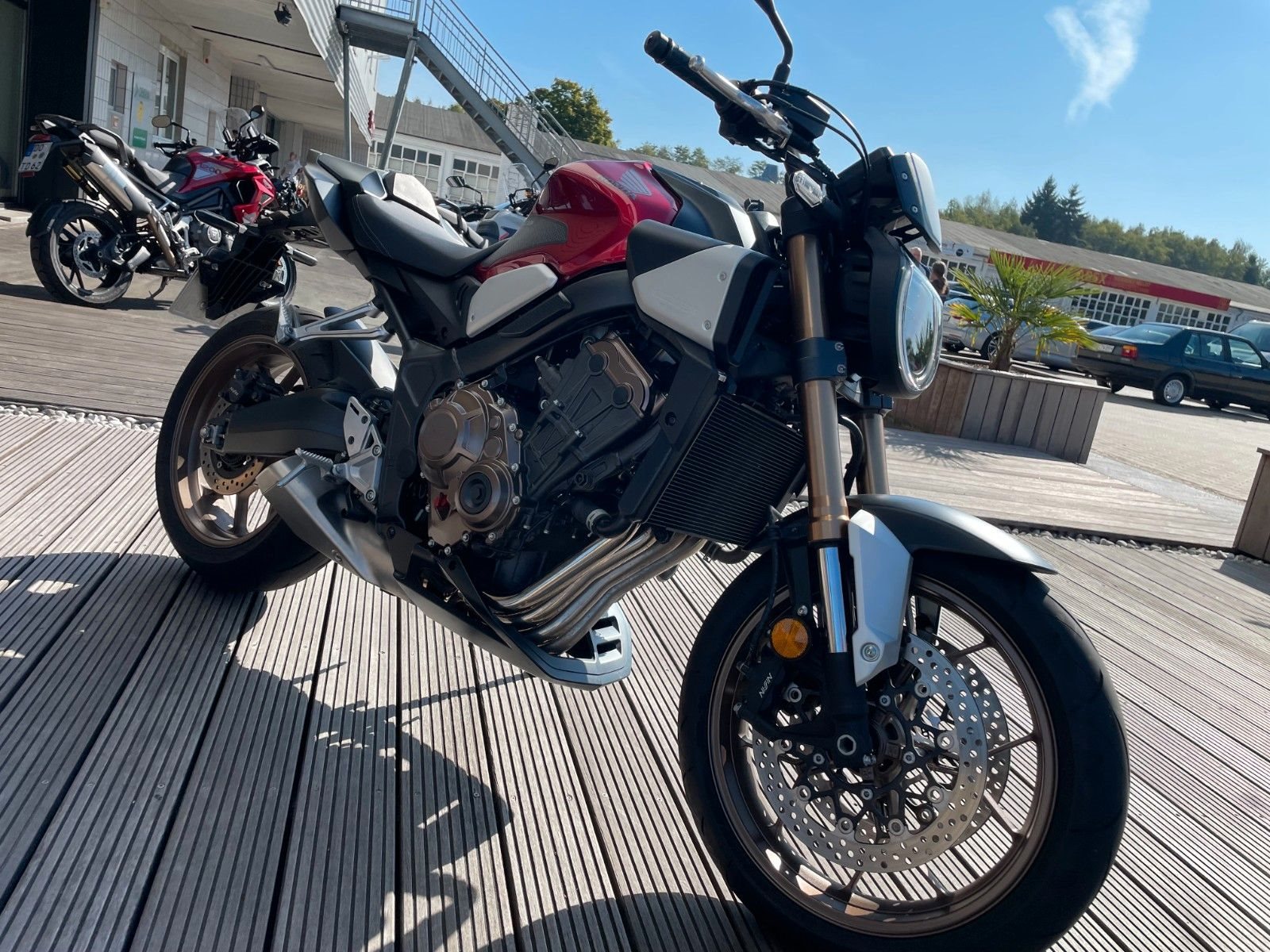Vierzylindermagie pur. Die aufs Wesentliche reduzierte CB650R überzeugt im Stadtverkehr und auf der Landstraße durch herausragende Beschleunigung, agile Leichtigkeit und das unverwechselbare, von der CB1000R inspirierte Neo Sports Café-Design. Hinzu kommen erstklassige Technik und das herausragende als Sonderausstattung erhältliche neue Honda E-Clutch.
