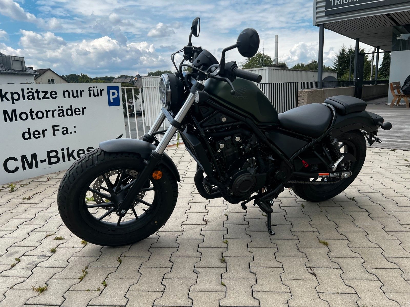 Auf ca. 1.500 qm Ausstellungsraum mit Fachwerkstatt bieten wir ihnen die komplette Modellpalette von Triumph und Honda Neufahrzeugen, sowie immer eine Auswahl an gebrauchten Fahrzeugen aller Marken. Des weiteren stellen wir einen Großteil des Original Triumph und Honda Bekleidungssortiment aus und bieten diverse Accessoires für viele Modelle in der Ausstellung.
